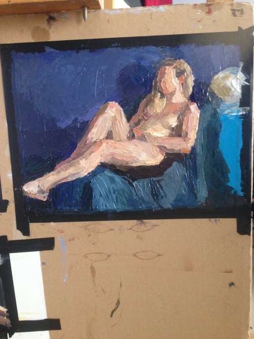 The Poster Study is like a thumbnail sketch used as a guide in the development of a painting from life. It differs from a sketch by being a deeply observed assessment of the dimensions of colour, especially value.