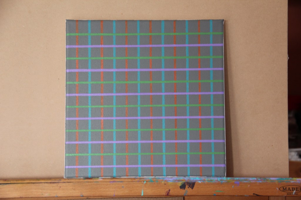 monocular rivalry 4 colours acrylic on canvas 50 x 50 cm studio view